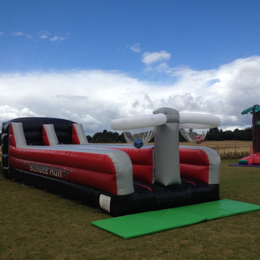 Bungee run basket ball is the latest high impact energy game provided by Cheltenham Bouncy Castles.