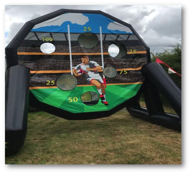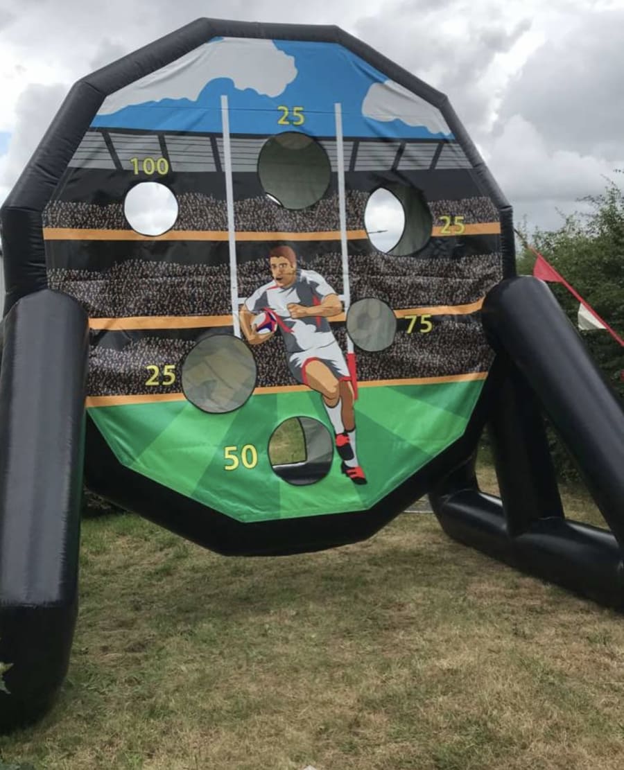 The ultimate doubled sided Velcro rugby darts inflatable game stands at an impressive 23ft tall. It is a fantastic mashup medley combining two of the Uk’s most favourites sporting games, rugby and darts.