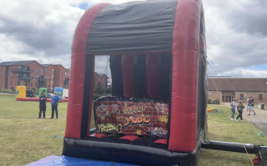 • Hire includes, delivery, set up and collection, safety crash mats, electric blower and ground stakes.