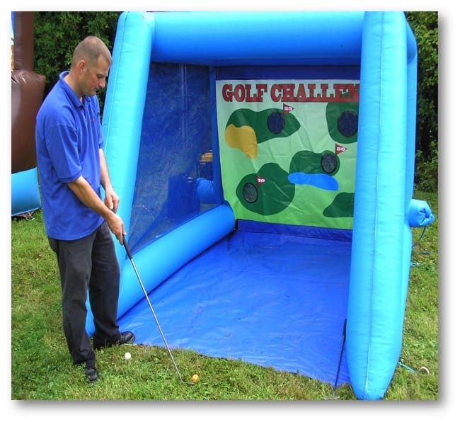 Hire of the inflatable golf game includes - Instructions of safe use, delivery, set up and collection, golf balls and golf clubs.