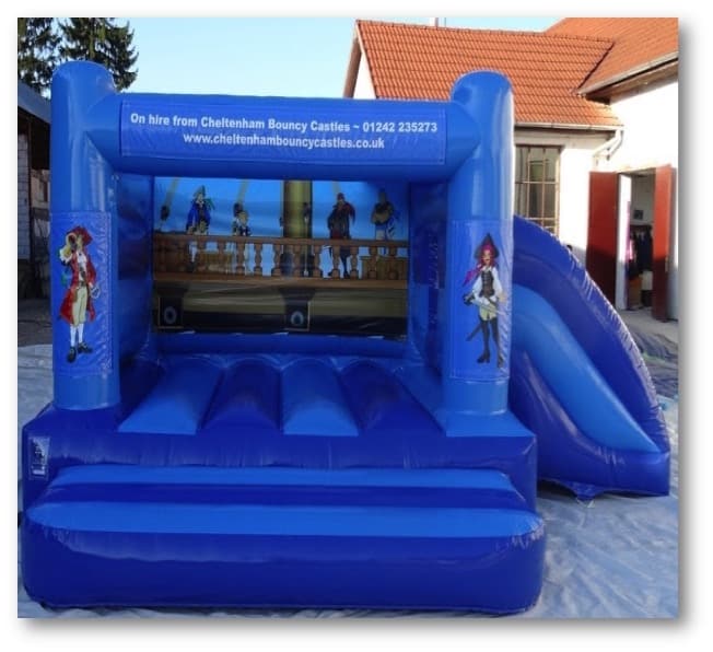 Hire a pirate themed castle combi slide at Cheltenham Castles. Book this pirate bouncer by calling Cheltenham bouncy castles on 01242 235273 your Gloucestershire bouncy castle hirer.
