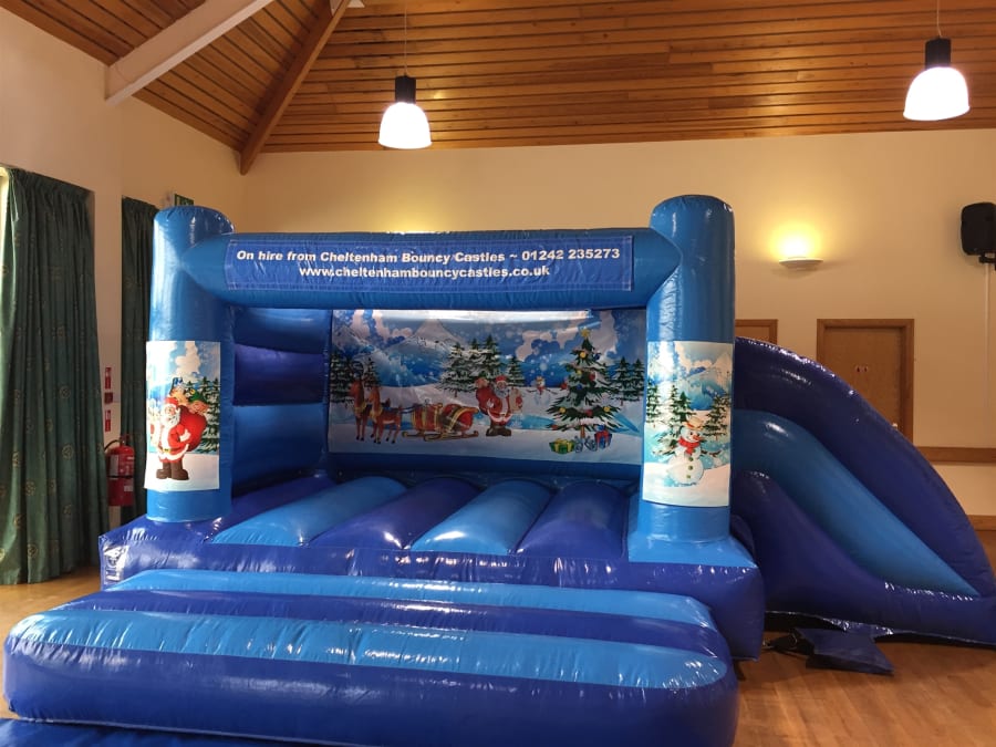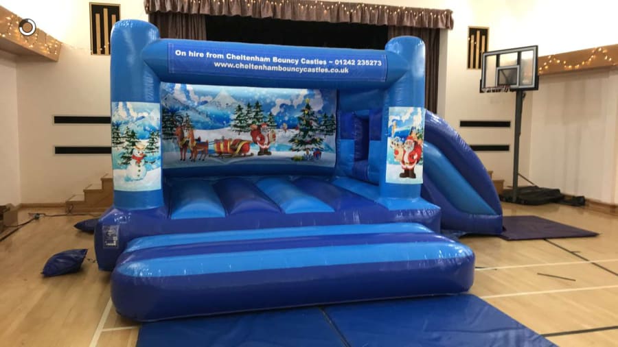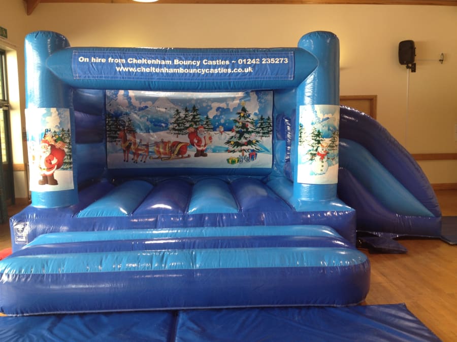Christmas themed bouncy castle combi slide to hire in Cheltenham, Tewkesbury, Gloucester, Stroud and surrounding areas.