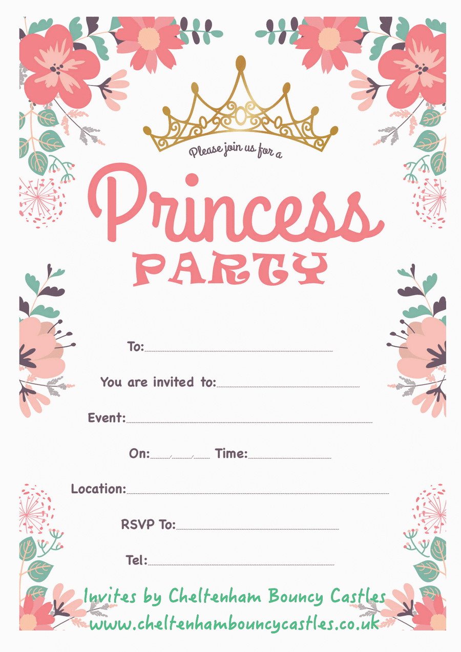 Pink Princess Party Invitations for Princess Bouncy Castle & Soft Play Party