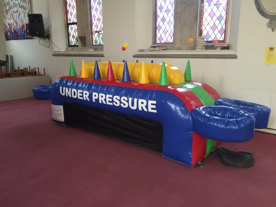 The amazing under pressure game is available to hire from All about fun uk.com ~ the party and event hire company, Gloucestershire's biggest fun entertainments hire company. Please contact us to see if we deliver to your area. Call today on 01242 235273.