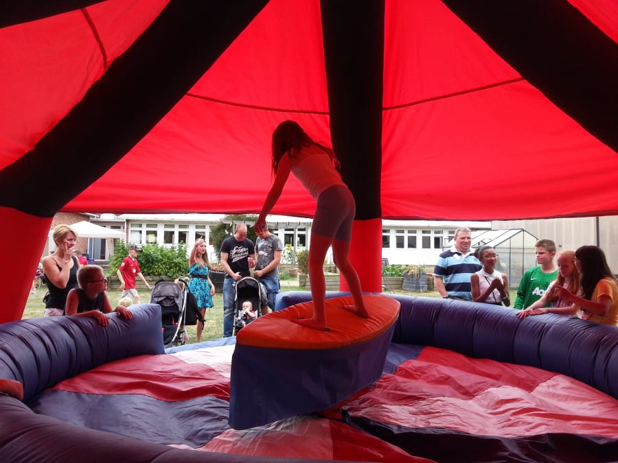 Try to keep your balance for as long as possible but don’t worry about falling off, you will only land on the inflatable surround without getting wet or eaten by sharks.