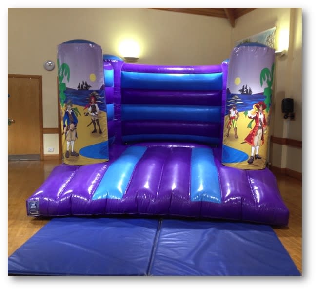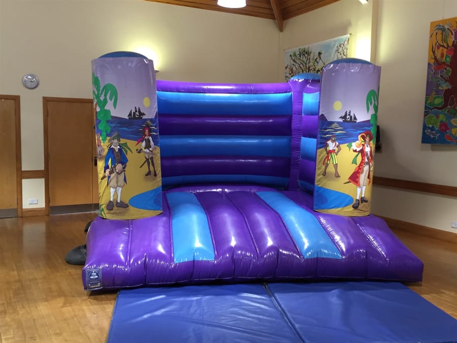 The hire of the pirate bouncy castle includes delivery, set up and collection for you. All accessories including safety crash mats, electric blower, ground stakes or sand bag weights and extension leads of up to 30 metres are also included. For outside hires, we ask for a flat grassed area and also side access into the garden.