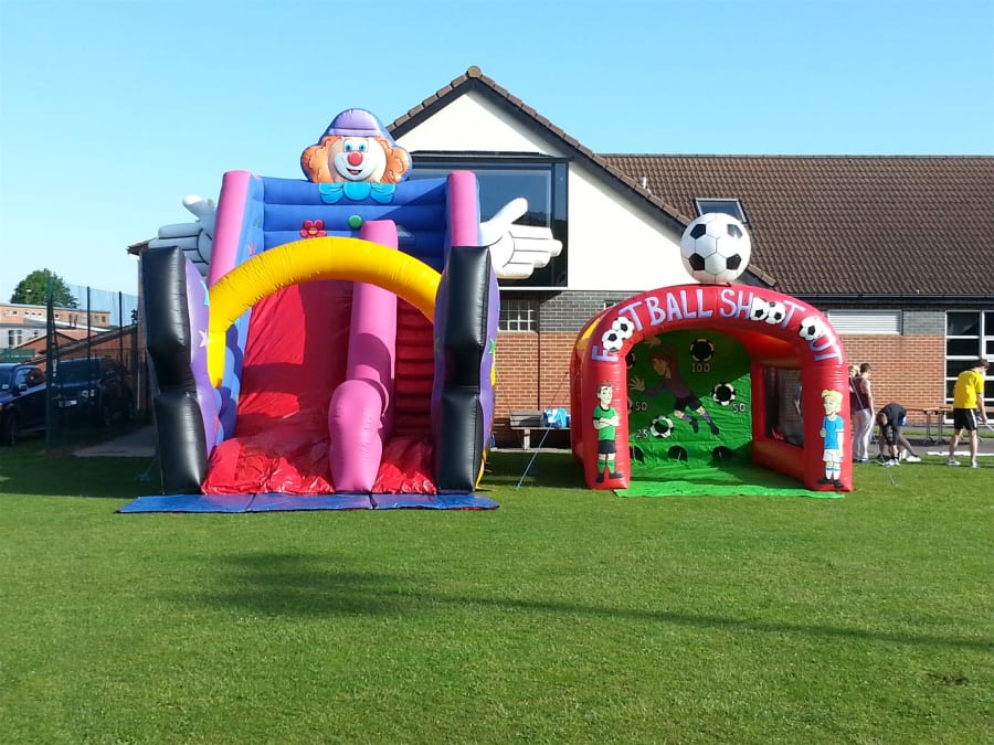 Large clown inflatable slide for hire in and around Cheltenham, Gloucester, Tewkesbury and surrounding towns and Gloucestershire villages.