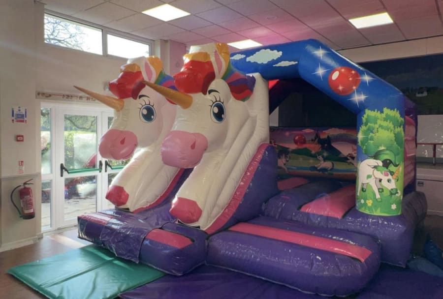 We offer bouncy castle hire services in Cheltenham, Gloucester, and Tewkesbury. Our team is dedicated to providing exceptional customer service and ensuring that your event is a success. Whether you're hosting a birthday party, school fair, or community event, our 3D Unicorn Twin Headed Castle Combi Slide is the perfect addition to make it truly memorable.