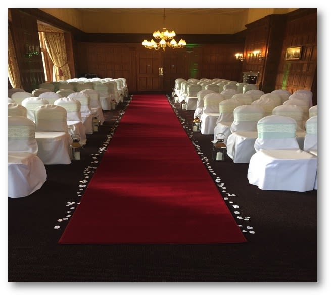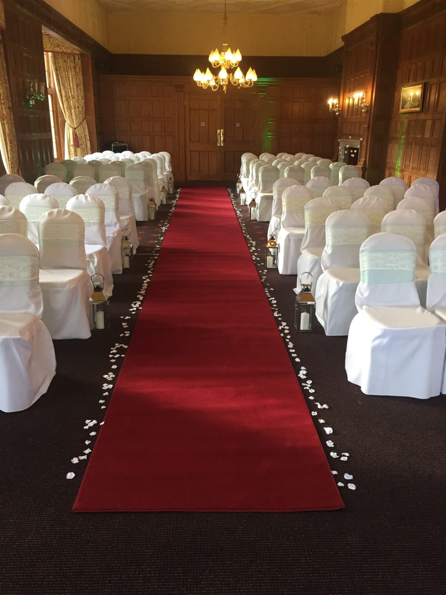 We are able to offer red carpet in various lengths and in widths of 1.2 metres. Our red carpet is of the highest quality and has fully bound edges for that luxurious VIP look. As well as wedding aisles, red carpet can also be hired to wow your guests at your corporate function.