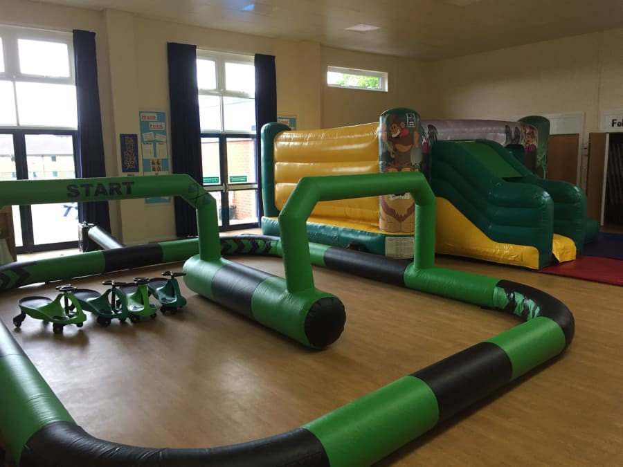 INSIDE HIRES -Indoor bouncy castles do come with sand bag weights for extra safety.